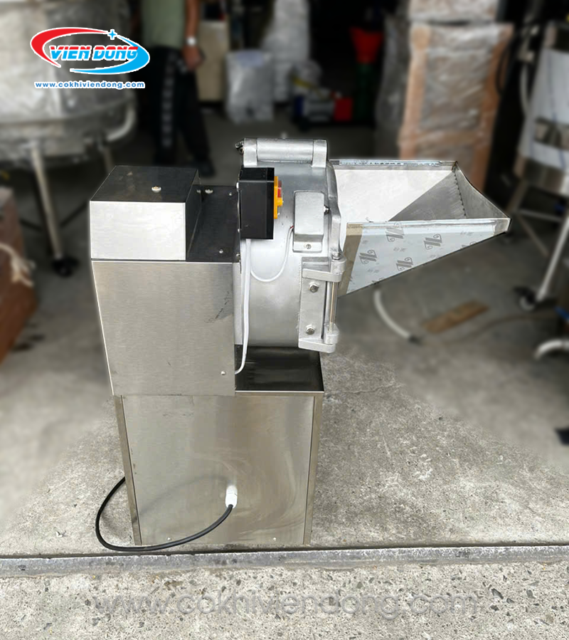 Thiết kế kín hoàn toàn, giúp ngăn bụi và mảnh vụn bắn ra ngoài, đồng thời dễ vệ sinh sau mỗi ca làm việc. Từng chi tiết được gia công tỉ mỉ, phù hợp với tiêu chuẩn an toàn trong ngành thực phẩm hiện nay.